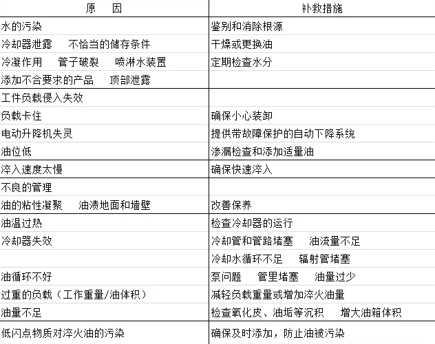 淬火油在使用過(guò)程中和環(huán)境是*重要的,表1、表2、表3、表4、表5對(duì)淬火油在使用過(guò)程中易出現(xiàn)的問(wèn)題和解決措施做簡(jiǎn)單介紹。