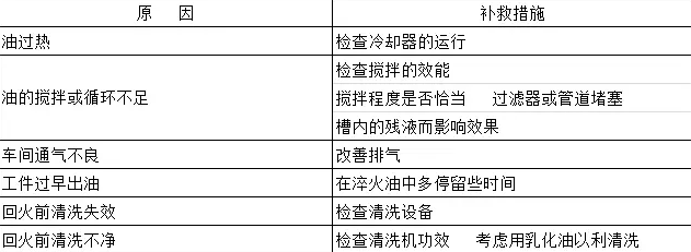 表2 熱處理的冒煙原因及解決措施