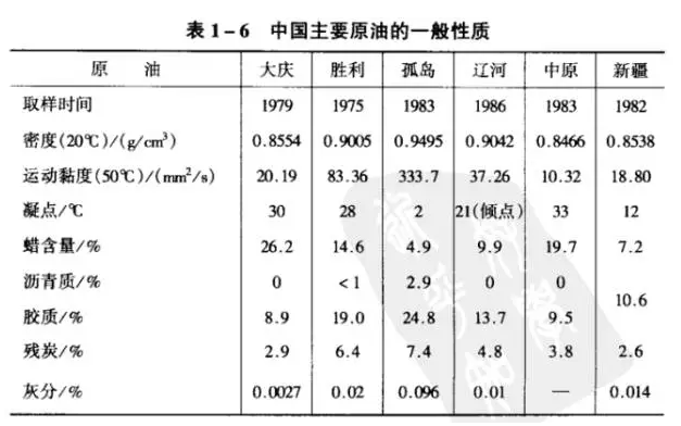 講完了特殊原油,再來看看中國主要原油的一般性質(zhì):
