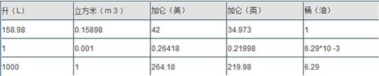 體積單位主要有桶、加侖、升、立方米,它們之間的換算系數見表2。